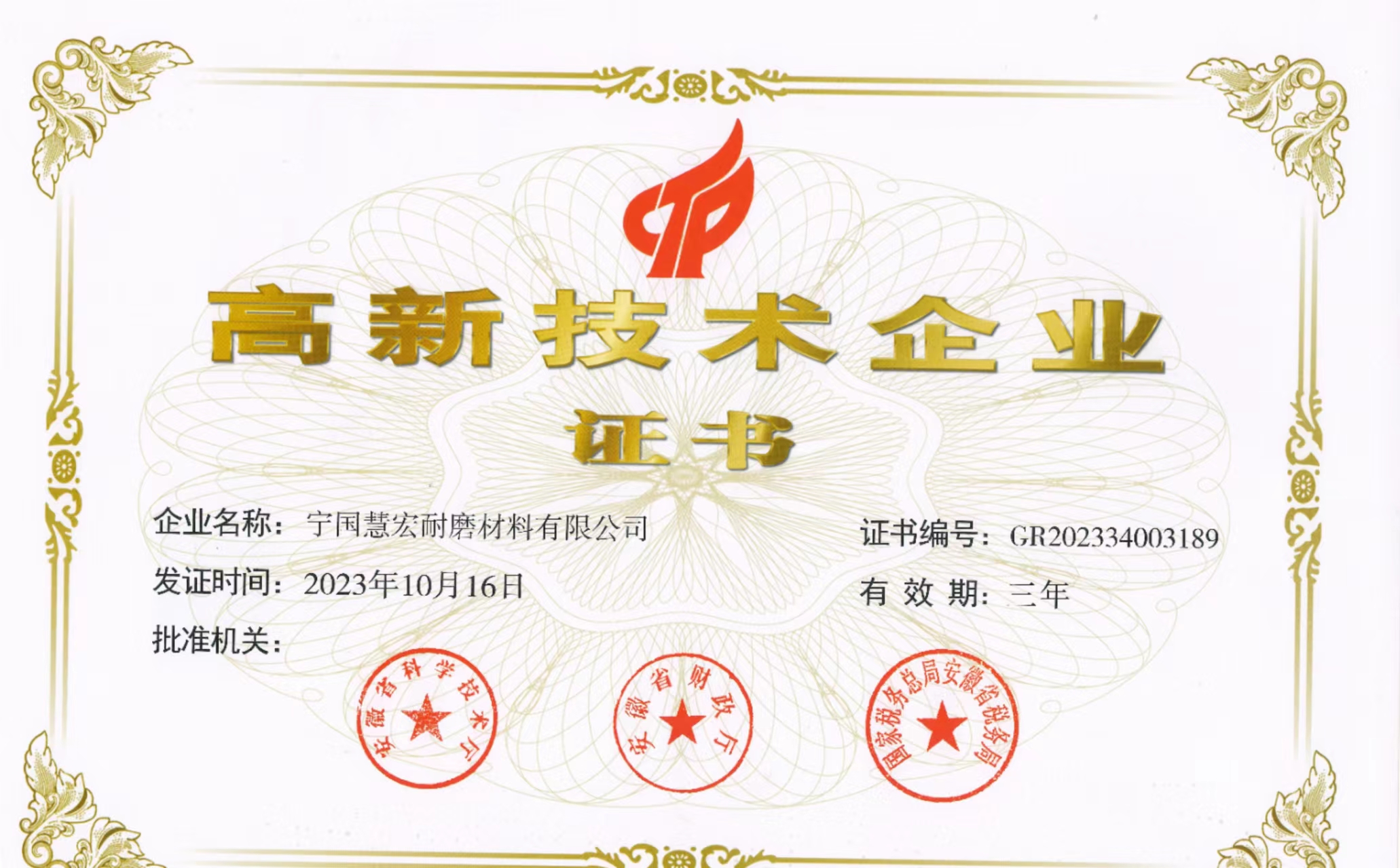 可靠的設(shè)備,才能長久穩(wěn)定運(yùn)行全面推行ISO9001;2000版質(zhì)量管理體系標(biāo)準(zhǔn),秉承“科學(xué)管理、精心制造、優(yōu)質(zhì)服務(wù)、追求卓越”的質(zhì)量方針,不斷打造高端耐磨材料產(chǎn)品。